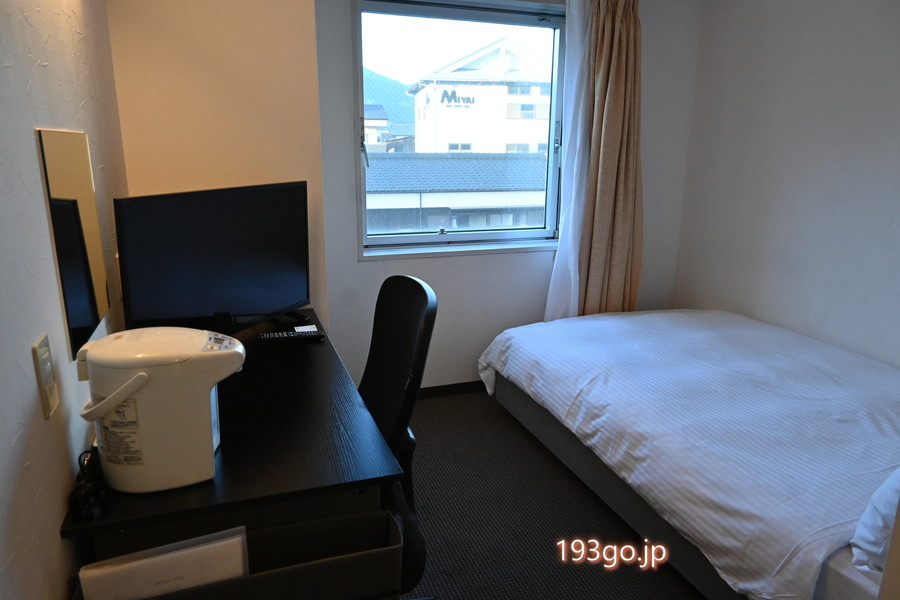 コンパクトなお部屋だけど、窓から町の風景が見え、デスクもあり快適。まったり過ごせた。