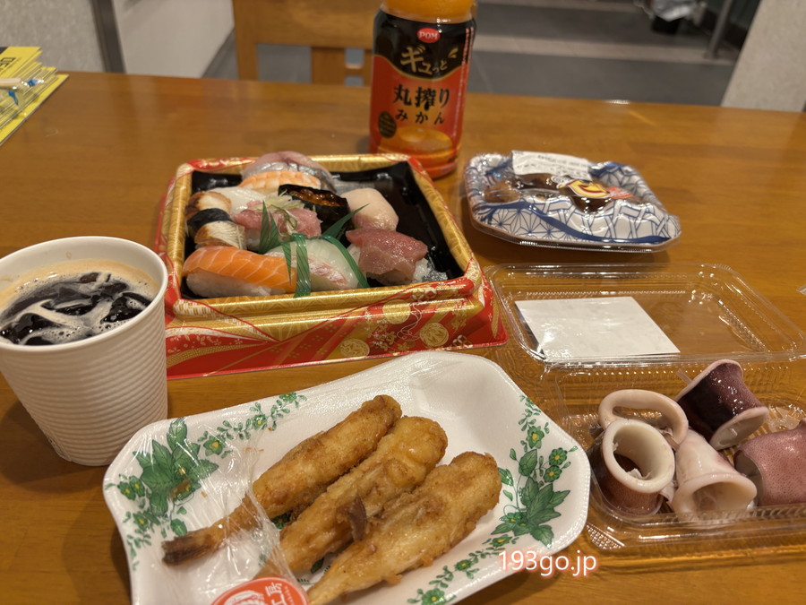 電子レンジやテーブルもあり、買ってきたお惣菜を。
