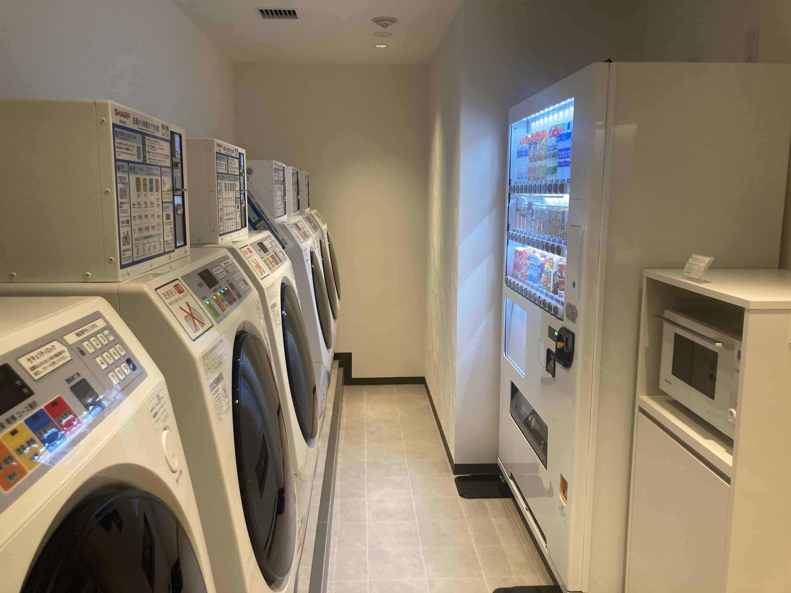 また、洗濯乾燥機や製氷機、電子レンジ、自販機が備わるスペース。