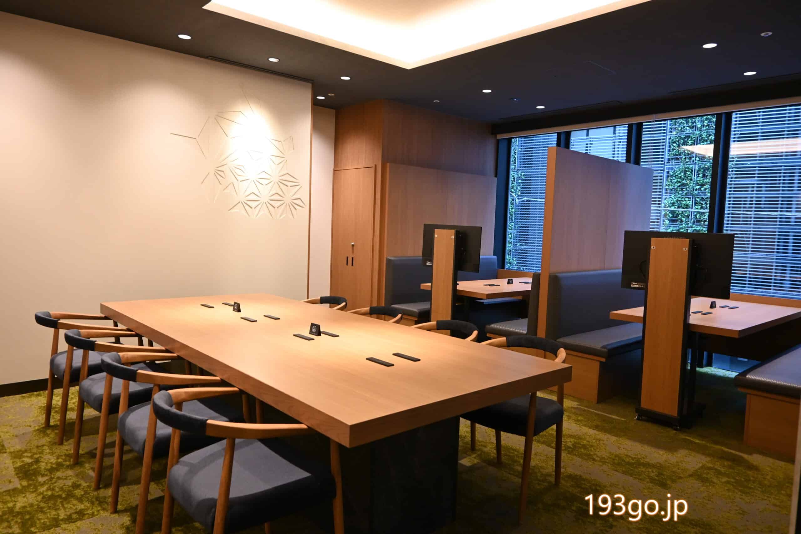 また、宿泊者が使えるラウンジがあり、広々したスペースにデスク、コンセントが完備。パソコン作業も快適に。