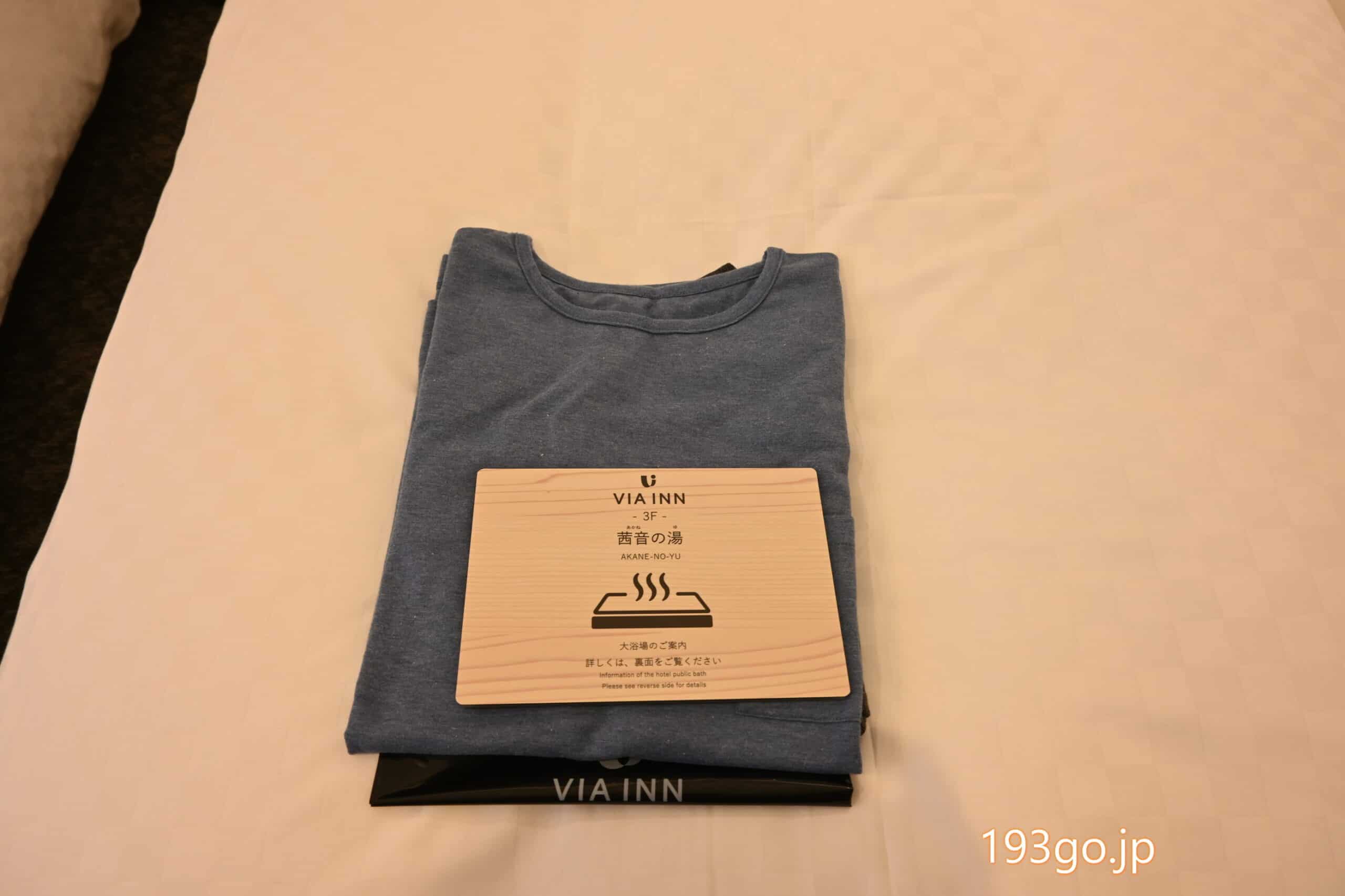 上下別のオリジナル館内着もあり、この格好で、大浴場や朝食の利用が可能。ゆったりで楽ちんスタイル!