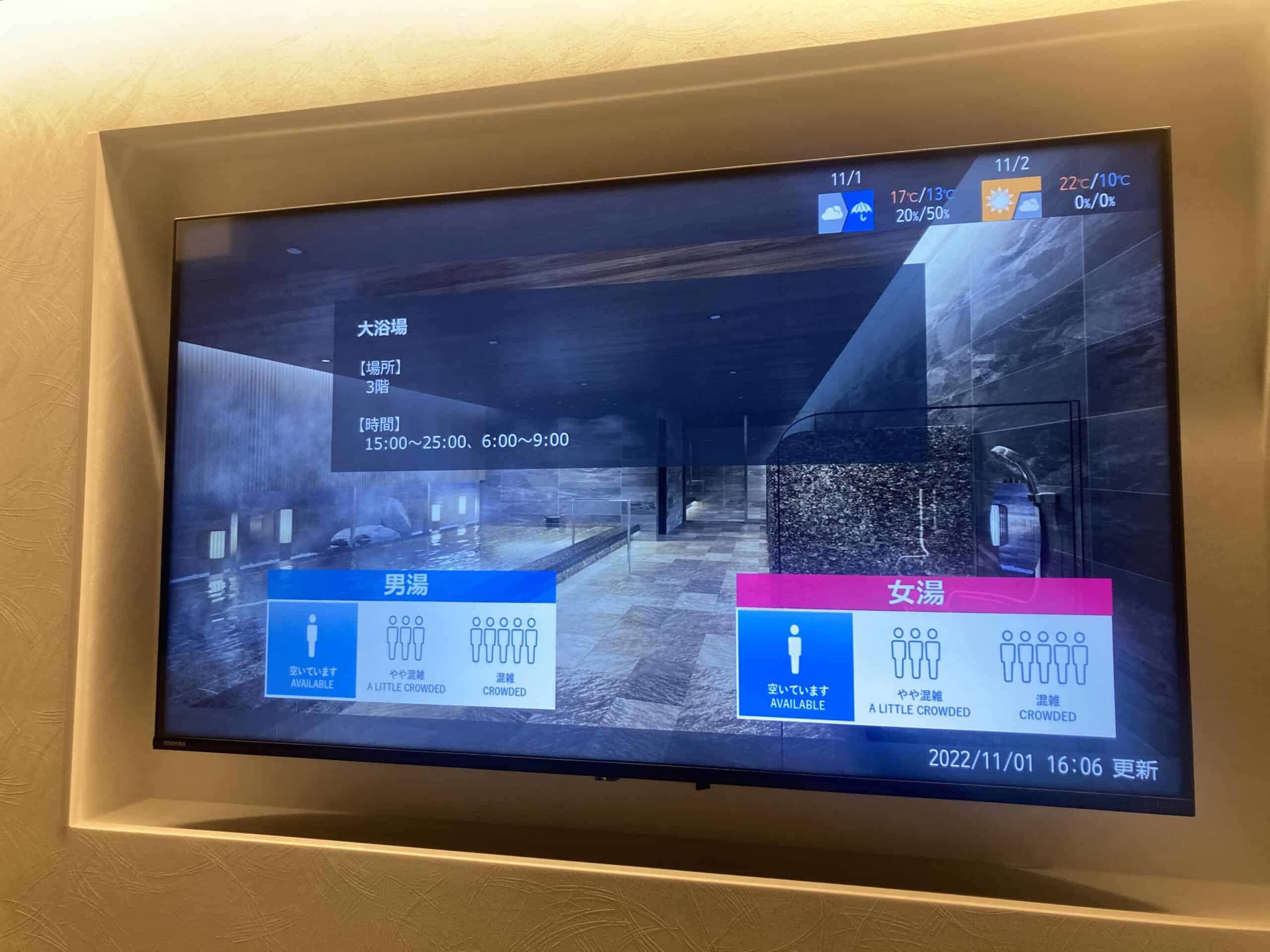 大浴場は宿泊者限定で、6:00~9:00、15:00~25:00まで利用可能。