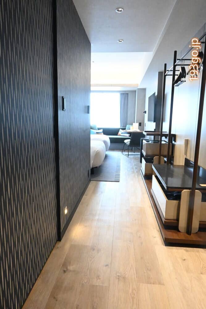 入口がシームレスで幅があり、オープンクローゼットが設けられ広々。