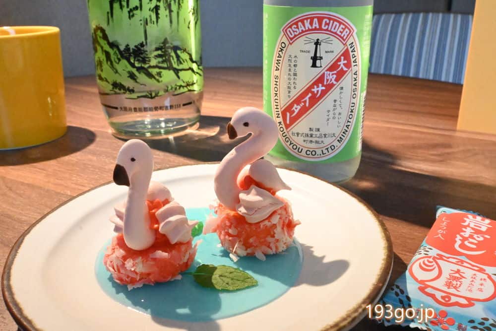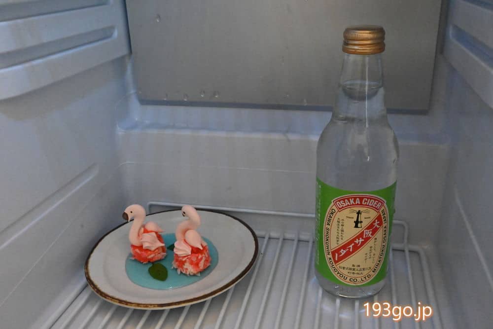 冷蔵庫にフラミンゴのスイーツ ホテルからのサプライズ