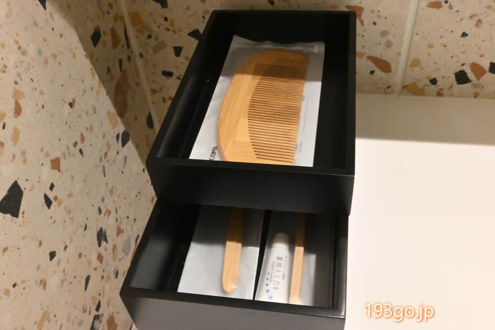 アメニティはなんと、歯ブラシとヘアブラシのみ。