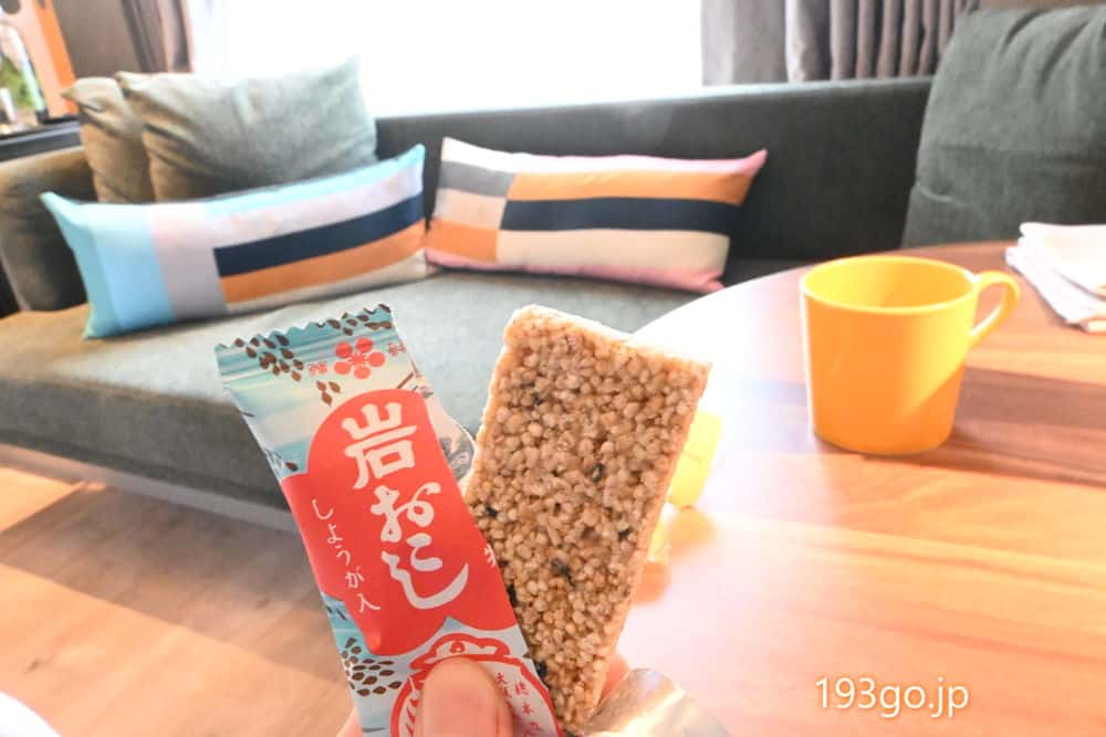お茶菓子は、岩おこし。冷えた大阪サイダーも!