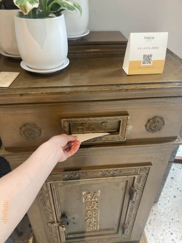 1階に設置されている、当時「京町ビル」で使われていた郵便ポストに投函すると、