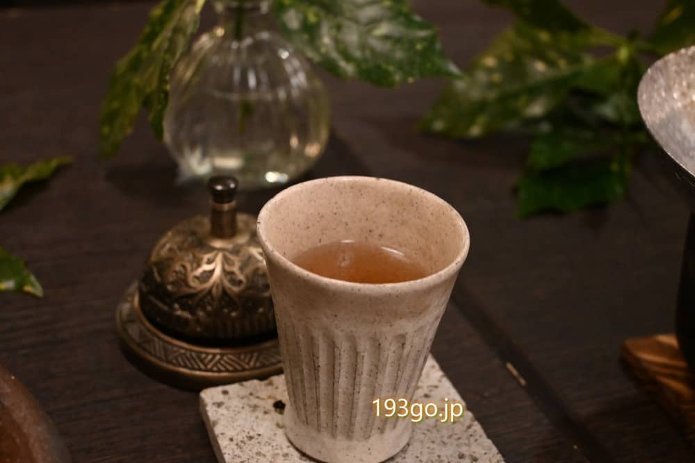 ウェルカムドリンクにはハチミツジンジャー、夕食では柿の葉茶、朝食にはヨモギ茶と毎回別のお茶が用意された。