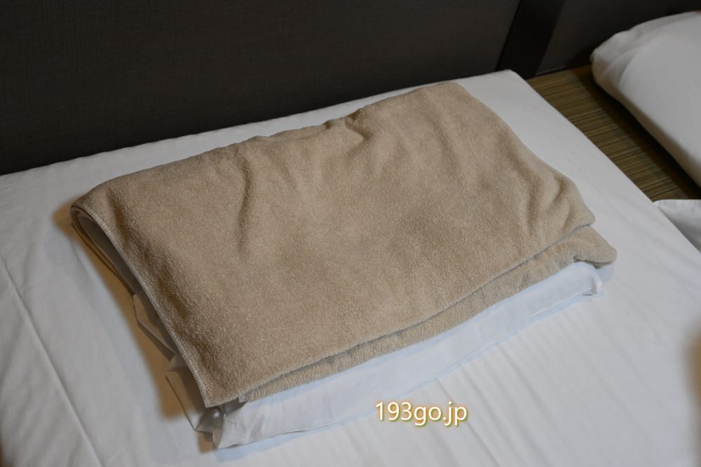 起きたらタオルがどこかに行ってると思ったら、低反発のしっかり素材で、キープしていた。