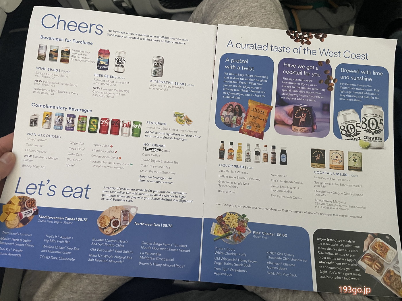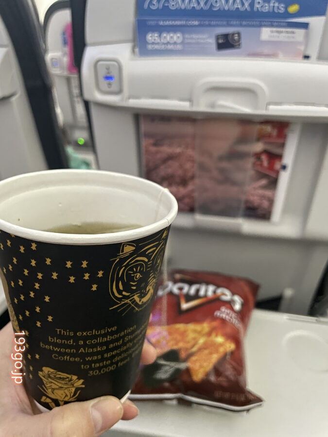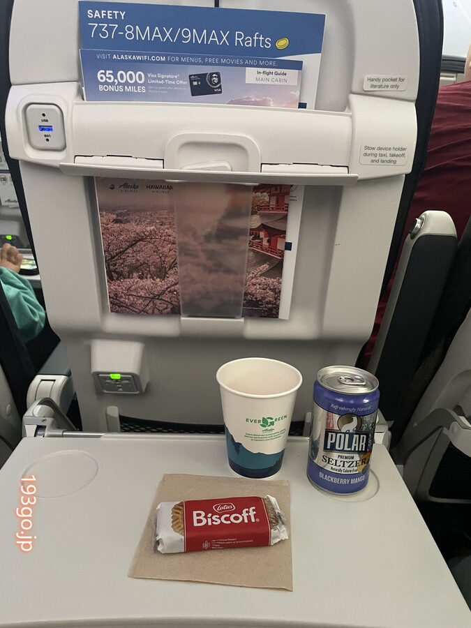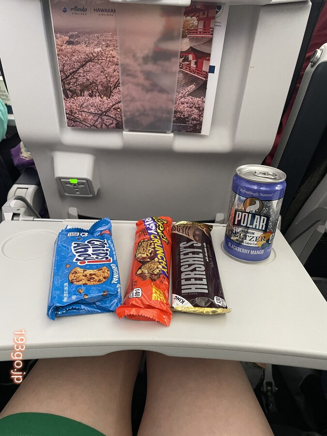 サンディエゴ⇒オーランドは、やや長時間フライトのため、ドリンクとスナックの提供が。
