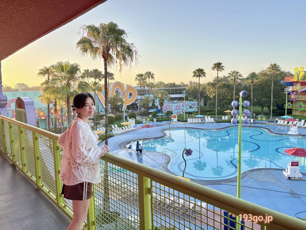 バスに乗り込み、リゾート内の数カ所の直営ホテルに寄り、宿泊するディズニー・ポップセンチュリー・リゾートに到着。