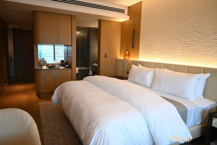 お部屋に到着。21階クラブルーム「クラブキング」にステイ ふかふかベッド&ゆったりバスルーム