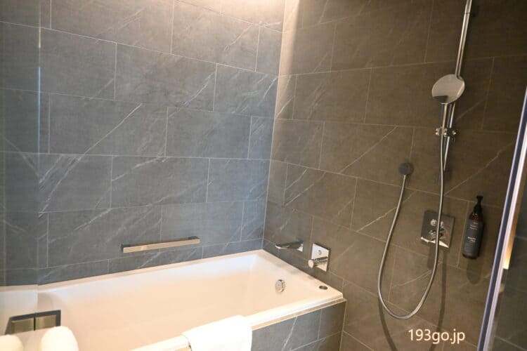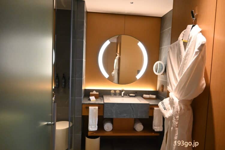 ゆったりした洗面台。バストイレ別、独立したバスタブとシャワーで優雅なバスタイム。