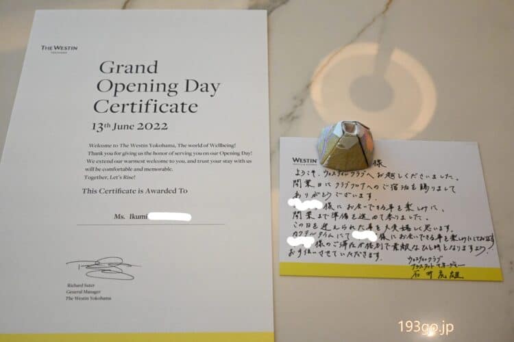 ウェスティンホテル横浜 6月13日のオープン初日に宿泊!初日宿泊証明書をゲット アクセスと初日リポも(2022年6月13日更新)