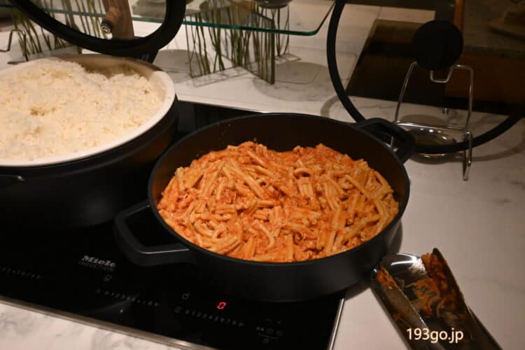 ビュッフェ台に料理がズラリと登場。