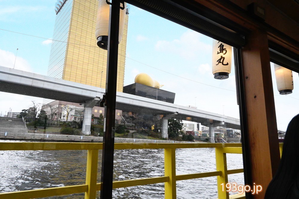 レインボーブリッジや、アサヒビール本社の黄金オブジェ、東京スカイツリーを水面から眺めながら。