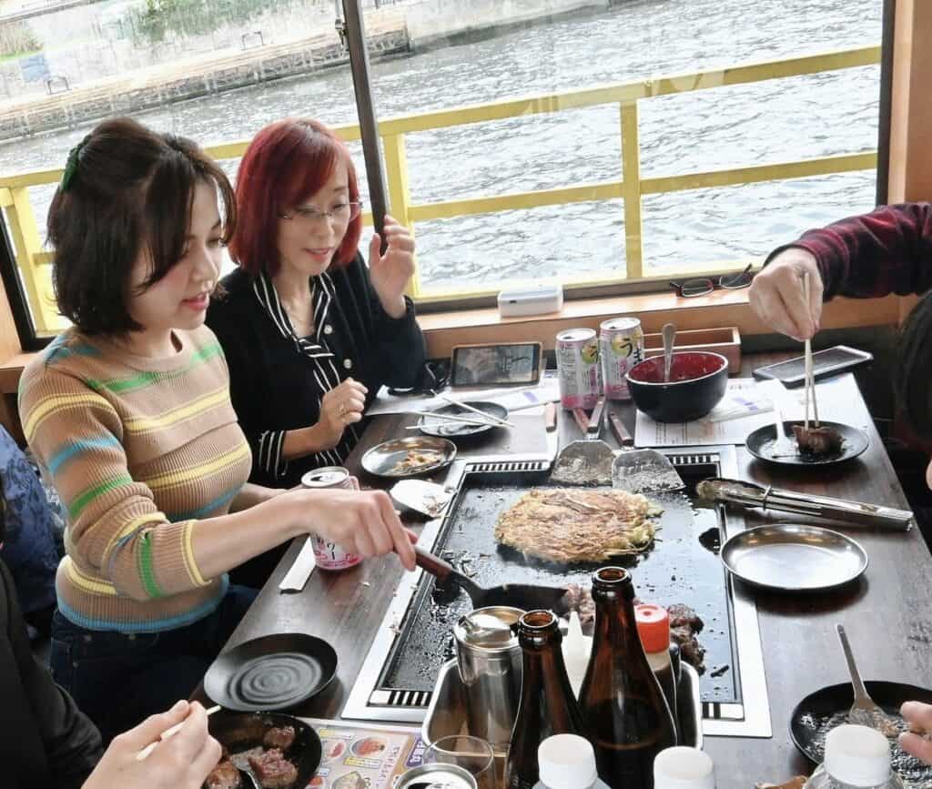 もんじゃ焼きや鉄板焼きが楽しめる屋形船は、他にないのだそう。