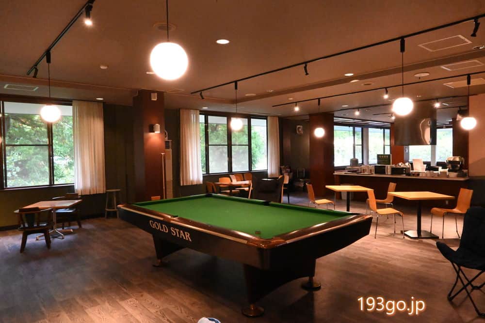 広々したラウンジスペースがあり、電子レンジやポット、飲料水、食器類が完備され、滞在中に利用可能。コーヒーマシンの利用は有料。ビリヤードや卓球台も。