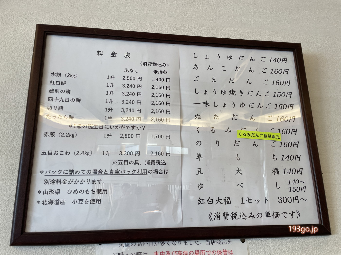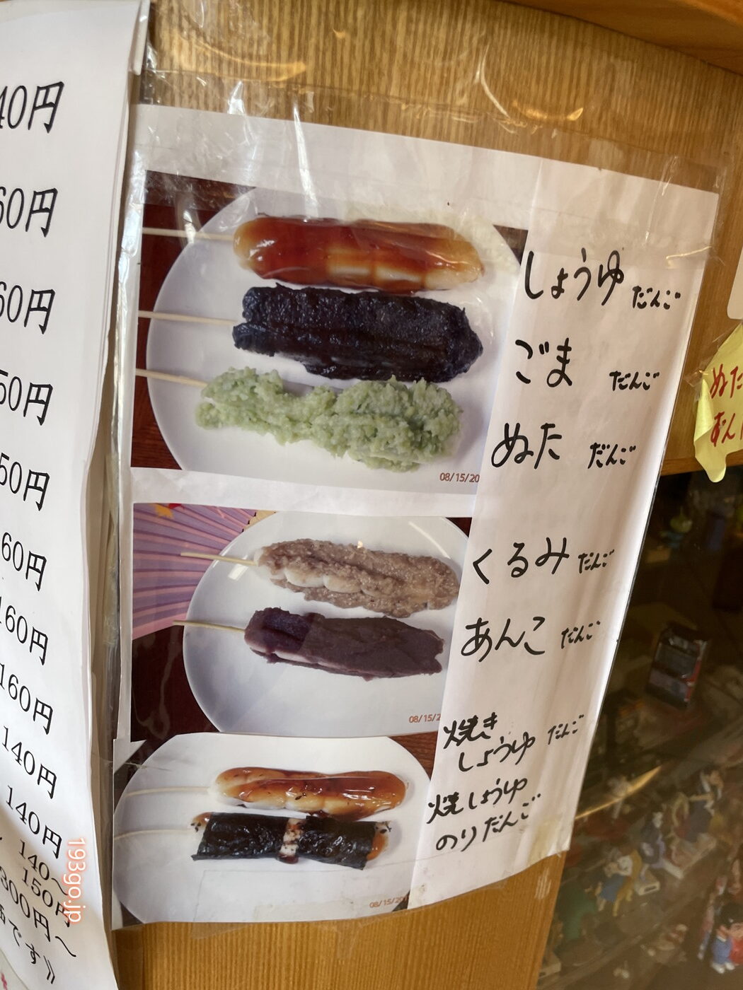 メニューにはしょうゆだんご、あんこだんご、ごまだんご、草餅、豆大福…
