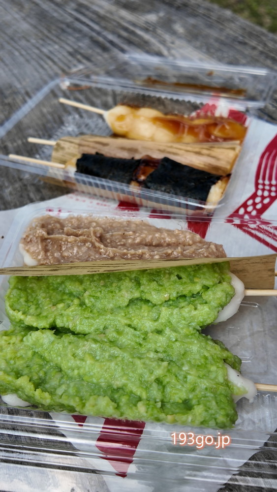 醤油団子、くるみ団子と続けて食べ、合間に塩気のある海苔団子!