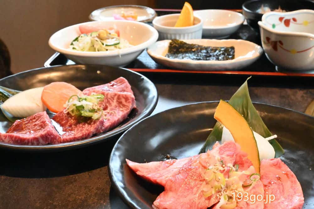ランチメニューは、炭火焼肉と、牛丼やハンバーグ、牛鍋などがありランチセットとドリンク付き。