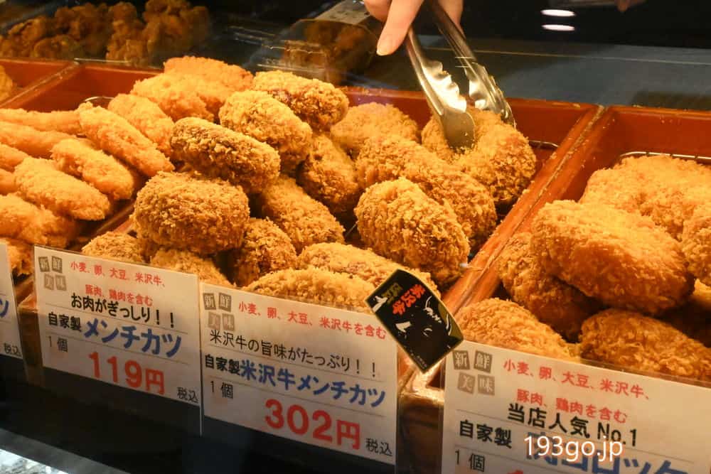 米沢牛のコロッケやメンチカツなどのお惣菜も。この日はフライデーでフライが2割引きに!
