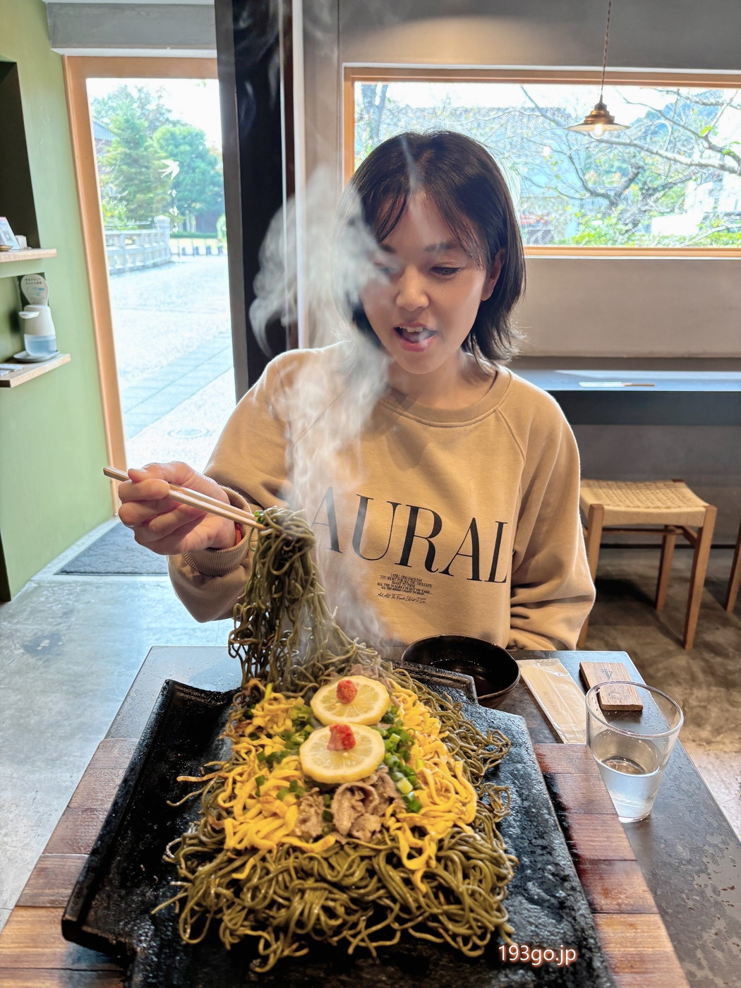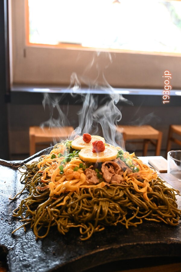 「瓦そば柳屋 山口 一の坂川店」で山口名物・瓦そば アツアツ&パリパリ!鮮やかな茶そば