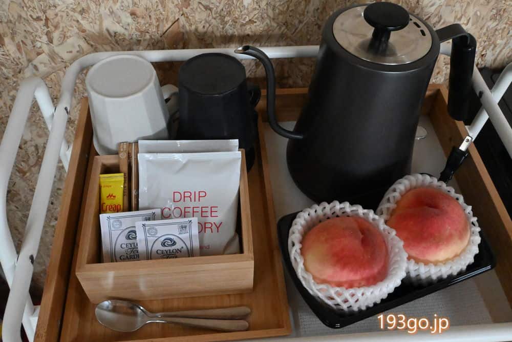 前日、道の駅で購入した山梨県産の旬の桃もカット。