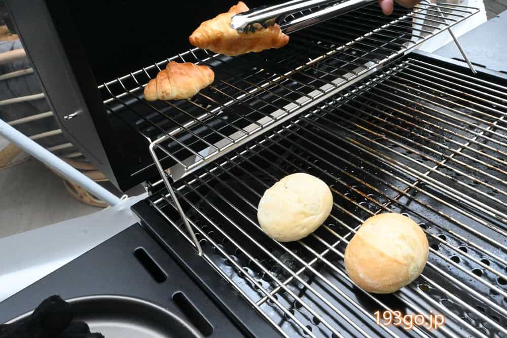 パンはBBQグリルでリベイクすると、表面は香ばしく中はしっとりフカフカ、甘くておいしい。