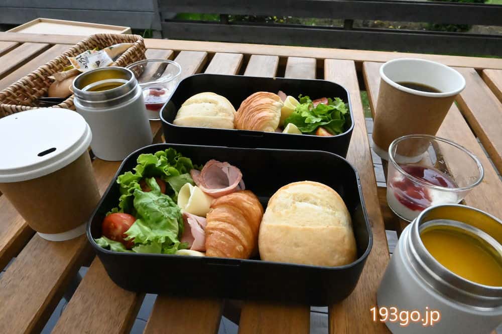 パンとサラダ、かぼちゃの冷製スープ、ヨーグルト、ホットコーヒーと、朝にピッタリのメニュー。