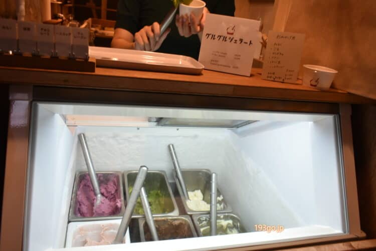 なぜ「グルグル」なのか店員さんに聞いてみると、ジェラートは練れば練るほど美味しくなることと、「西日暮里」と「日暮里」は山手線沿線で、グルグル回ってるとことからだそう。