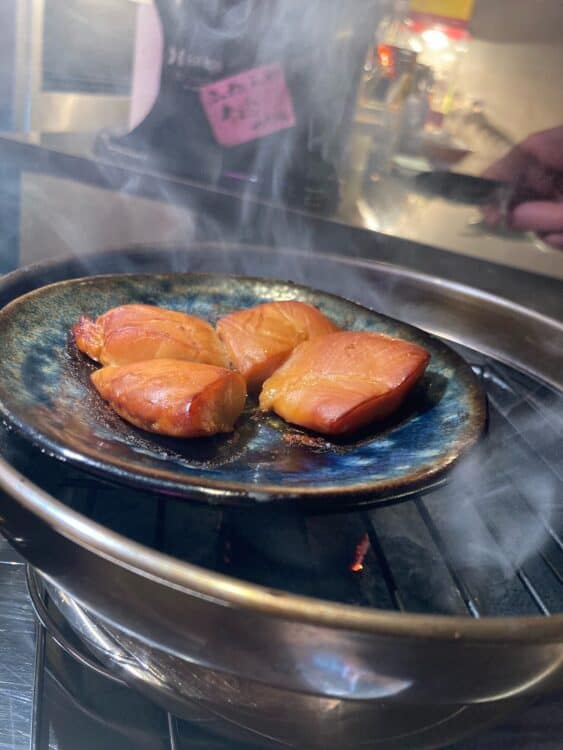 料理は、焼き小籠包や水餃子、大根餅などの点心や、台湾ソーセージ、台湾フライドチキン・鶏排(ジーパイ)などが揃い、すぐそこで(同じ空間にキッチンスペースが)揚げたり焼いたりした出来立ての料理が出てきて、特に焼き小籠包とジーパイが食べ応えもありアツアツで美味しかった。