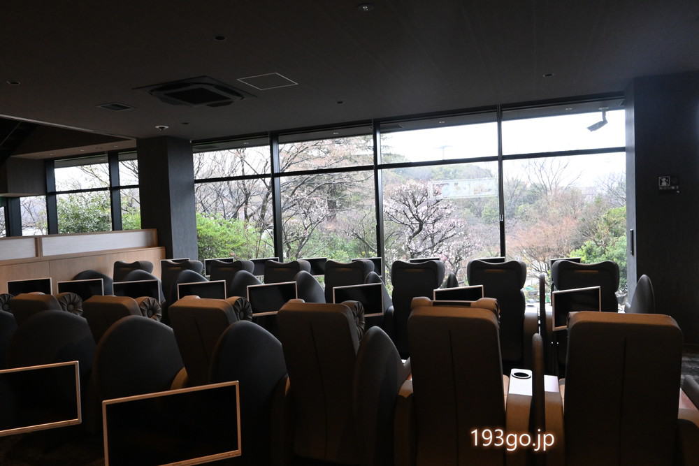 館内のどこにいても、遊園地(よみうりランド)やHANA・BIYORI園内の風景と共に過ごせるリラックス空間だった。