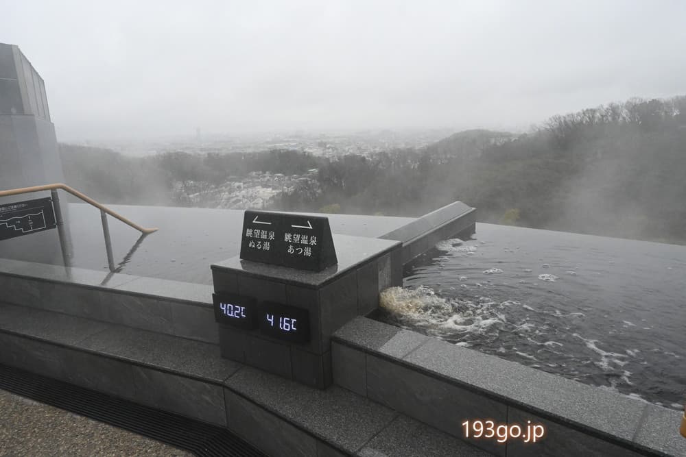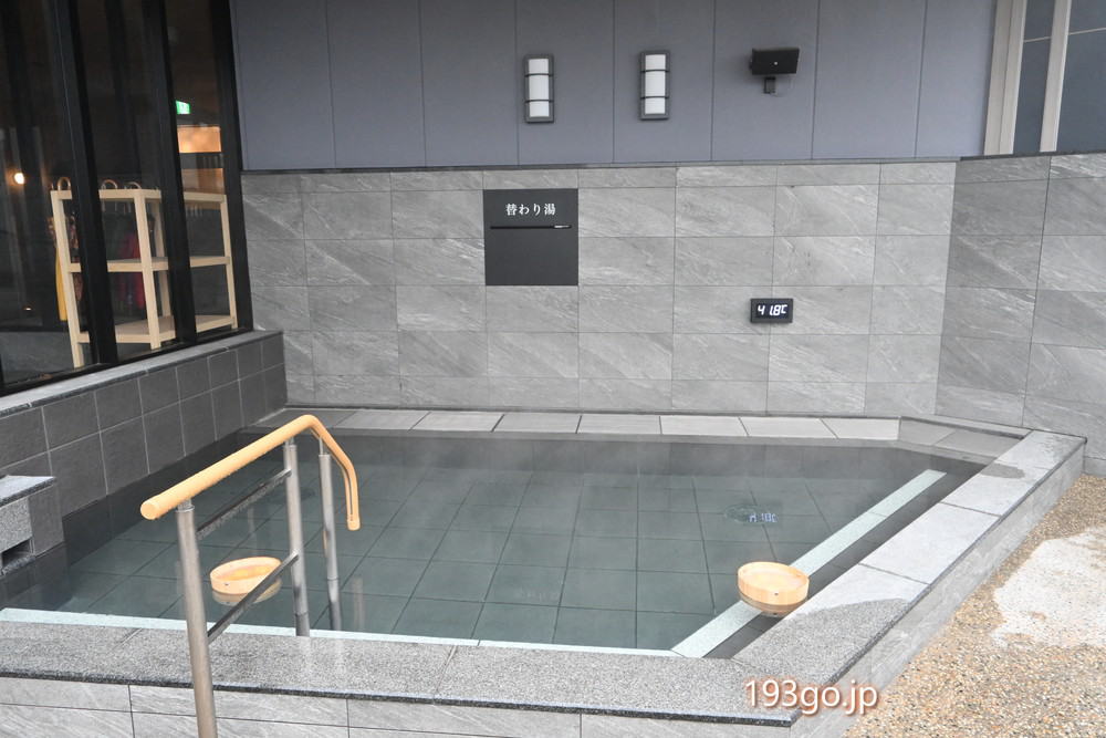 外湯は、眺望温泉あつ湯、眺望温泉ぬる湯、替わり湯の3種類。