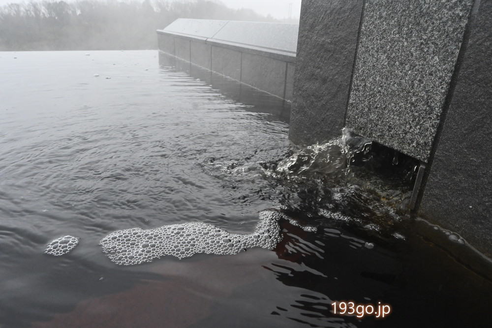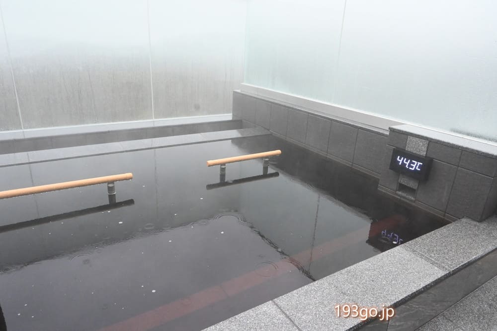 ぬる湯は、あつ湯よりも柵が低く浴槽が広いのでより開放感がある。