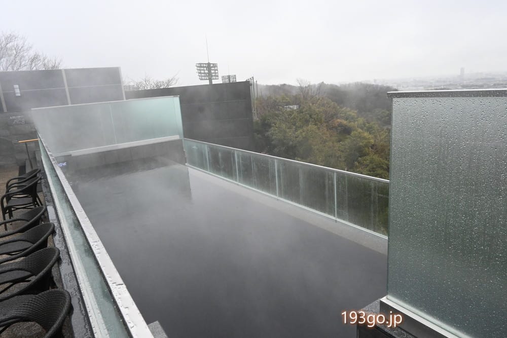多摩丘陵に建つロケーションを生かし、標高約100mから都心を一望できる露天風呂。