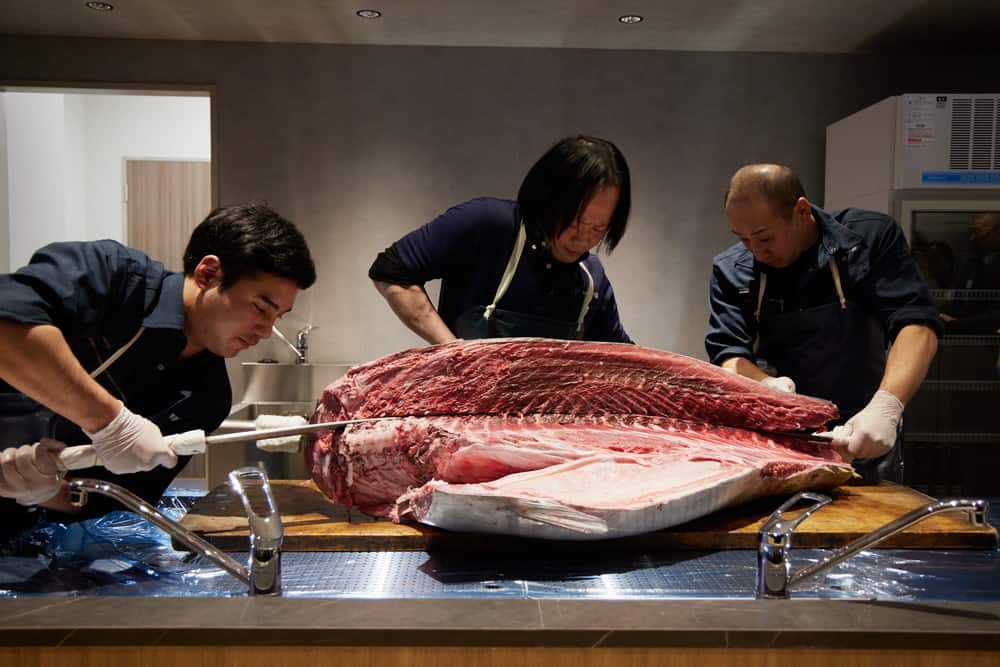 「よみうりランド眺望温泉 花景の湯」温泉で天然本マグロの解体ショー!激うま握りたてまぐろ寿司、サウナ飯も