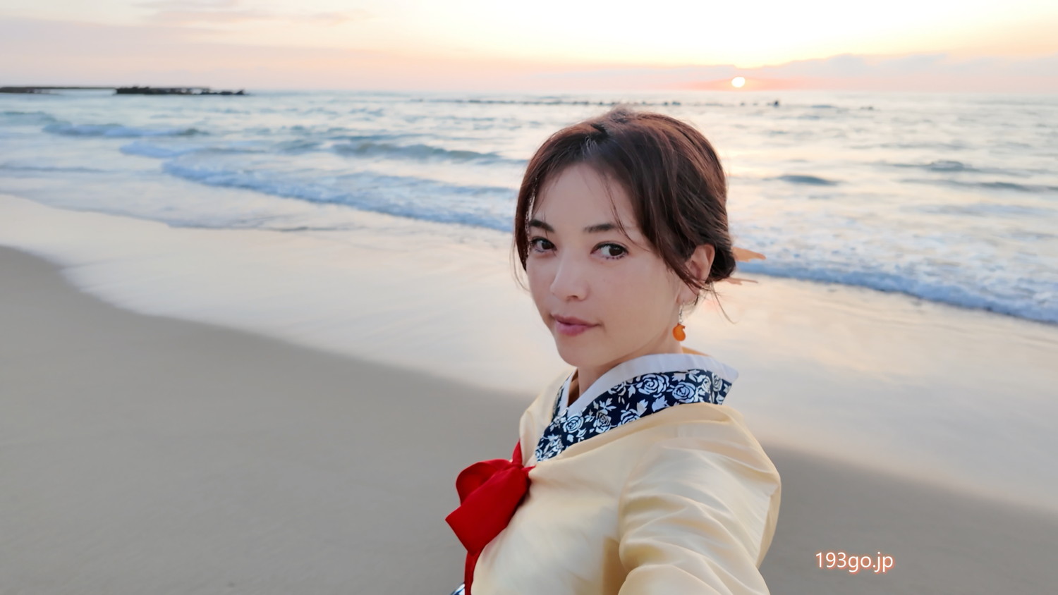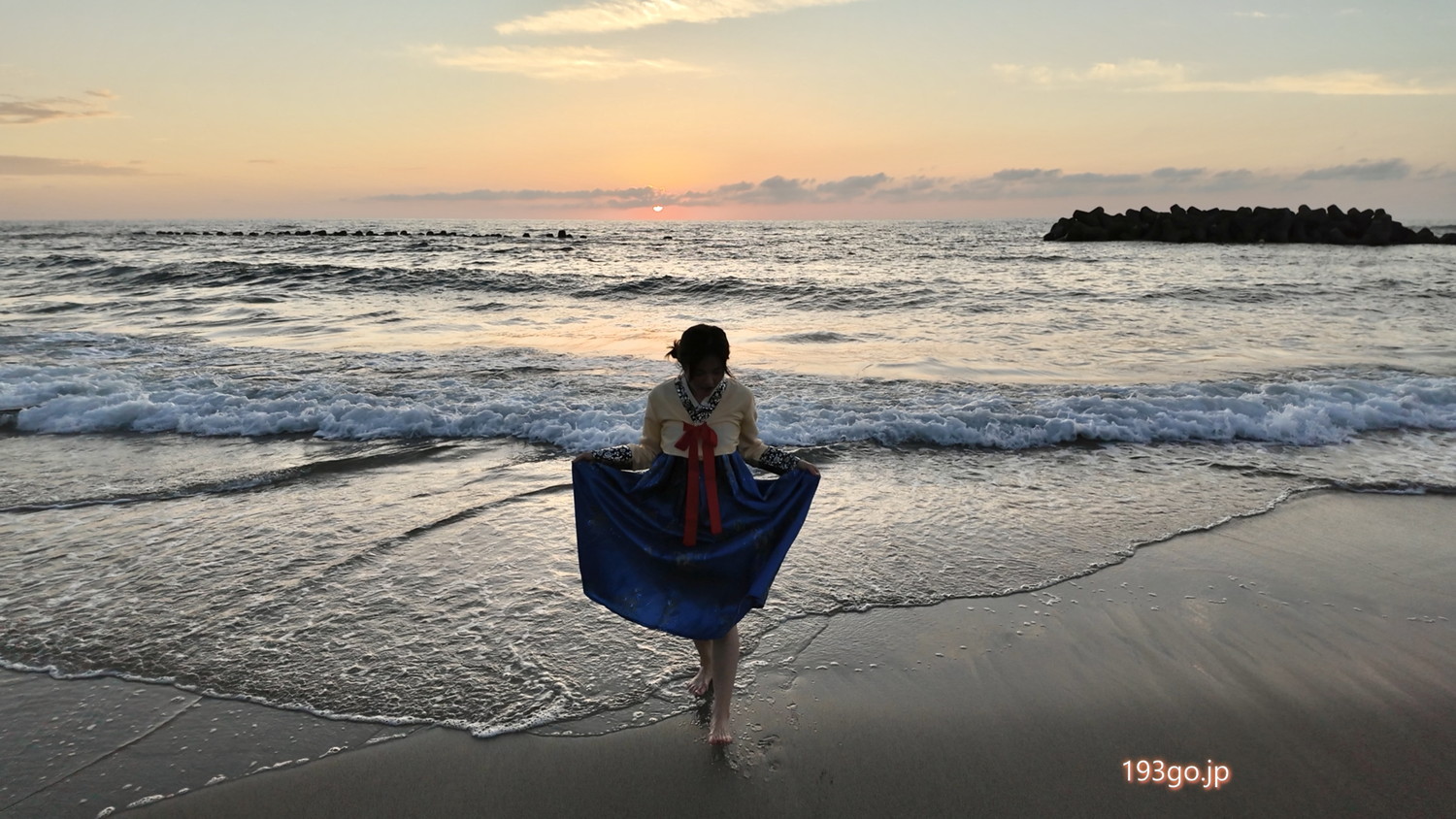韓国衣装チマチョゴリに着替えて海~!日本海の美しい夕日を